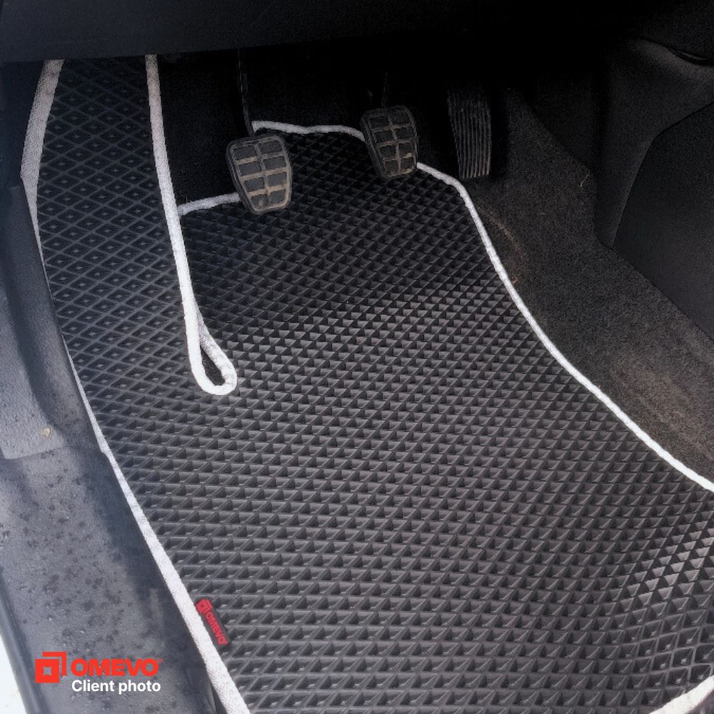 OMEVO EVA Koberečky® jsou vyrobeny z lehké, voděodolné pěny E-V-A. Neabsorbují vlhkost, jsou bez zápachu a snadno se čistí. OMEVO EVA Koberečky® kombinují to nejlepší z gumových a velurových rohoží, přičemž vynechávají jejich typické nevýhody. Jsou voděodolné, estetické, bez zápachu a vyrábějí se přesně podle modelu auta, což zajišťuje pohodlí a čistotu každý den.