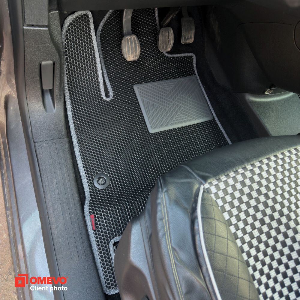 OMEVO EVA Koberečky® jsou vyrobeny z lehké, voděodolné pěny E-V-A. Neabsorbují vlhkost, jsou bez zápachu a snadno se čistí. OMEVO EVA Koberečky® kombinují to nejlepší z gumových a velurových rohoží, přičemž vynechávají jejich typické nevýhody. Jsou voděodolné, estetické, bez zápachu a vyrábějí se přesně podle modelu auta, což zajišťuje pohodlí a čistotu každý den.