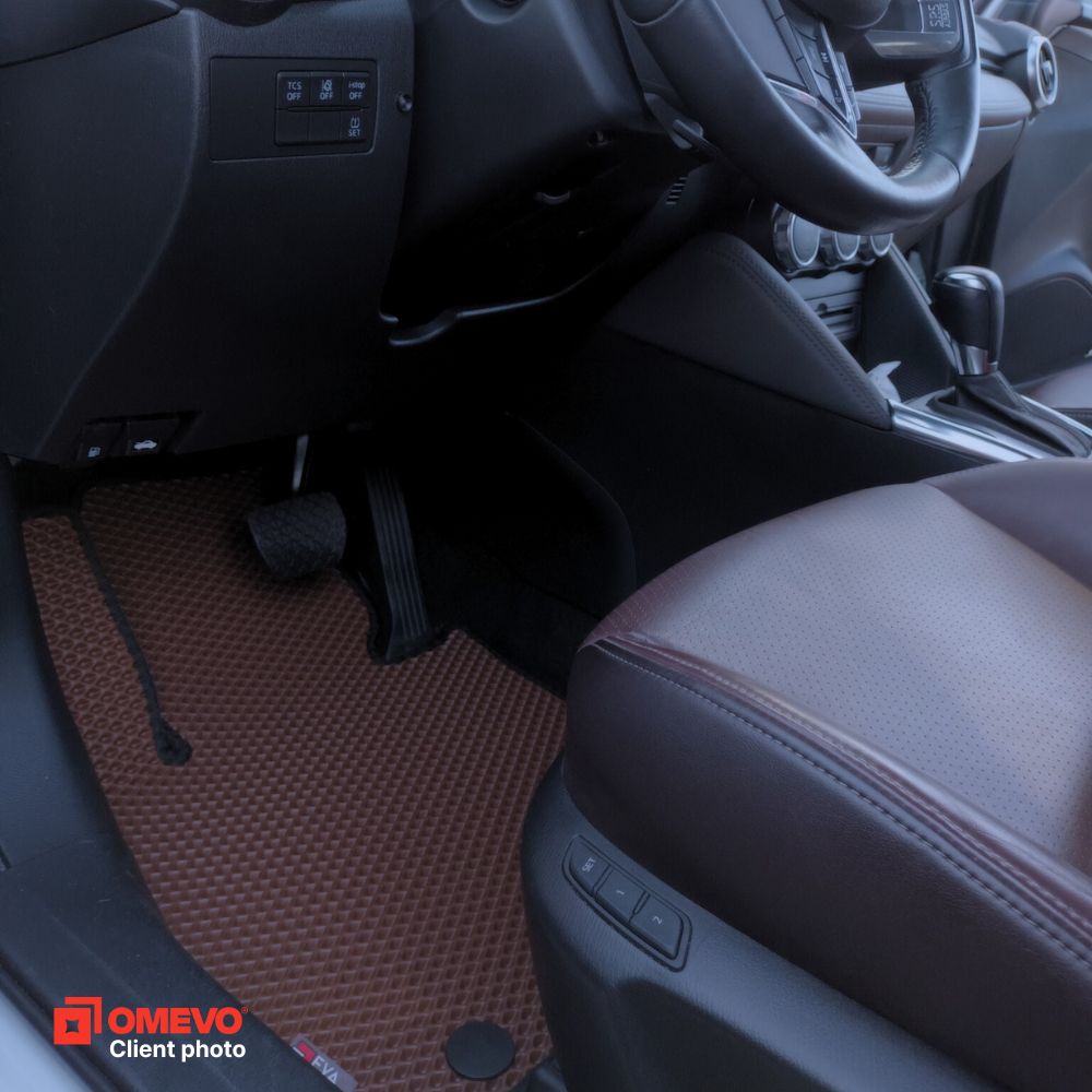 OMEVO EVA Koberečky® jsou vyrobeny z lehké, voděodolné pěny E-V-A. Neabsorbují vlhkost, jsou bez zápachu a snadno se čistí. OMEVO EVA Koberečky® kombinují to nejlepší z gumových a velurových rohoží, přičemž vynechávají jejich typické nevýhody. Jsou voděodolné, estetické, bez zápachu a vyrábějí se přesně podle modelu auta, což zajišťuje pohodlí a čistotu každý den.