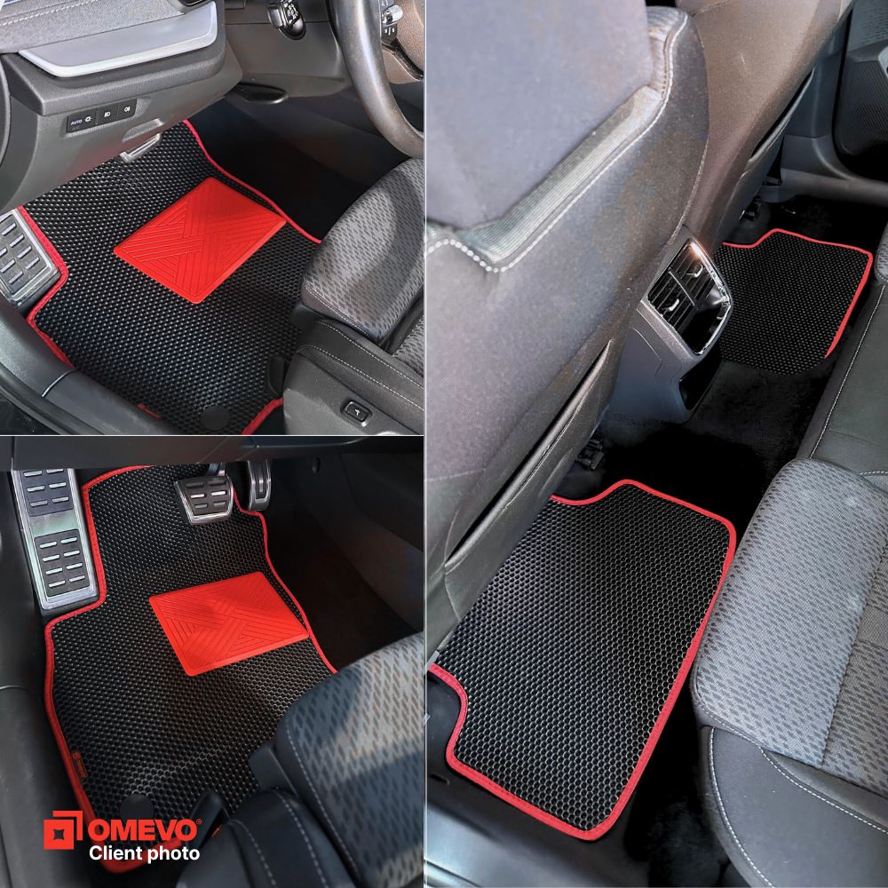 OMEVO EVA Koberečky® jsou vyrobeny z lehké, voděodolné pěny E-V-A. Neabsorbují vlhkost, jsou bez zápachu a snadno se čistí. OMEVO EVA Koberečky® kombinují to nejlepší z gumových a velurových rohoží, přičemž vynechávají jejich typické nevýhody. Jsou voděodolné, estetické, bez zápachu a vyrábějí se přesně podle modelu auta, což zajišťuje pohodlí a čistotu každý den.