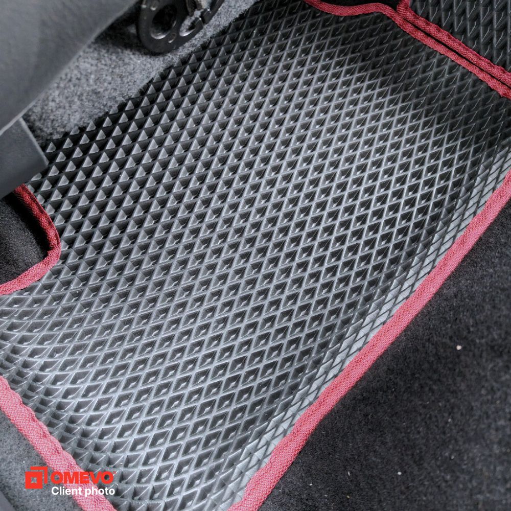 OMEVO EVA Koberečky® jsou vyrobeny z lehké, voděodolné pěny E-V-A. Neabsorbují vlhkost, jsou bez zápachu a snadno se čistí. OMEVO EVA Koberečky® kombinují to nejlepší z gumových a velurových rohoží, přičemž vynechávají jejich typické nevýhody. Jsou voděodolné, estetické, bez zápachu a vyrábějí se přesně podle modelu auta, což zajišťuje pohodlí a čistotu každý den.