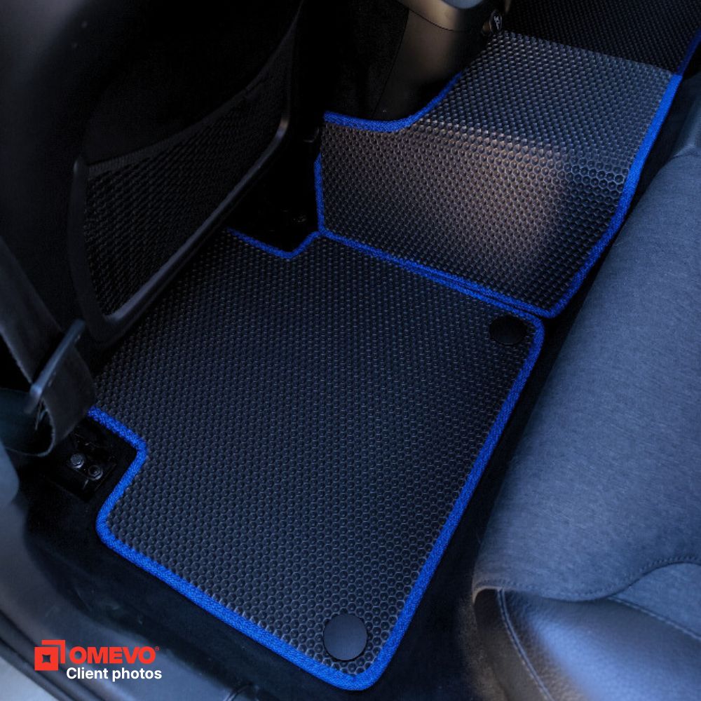 OMEVO EVA Koberečky® jsou vyrobeny z lehké, voděodolné pěny E-V-A. Neabsorbují vlhkost, jsou bez zápachu a snadno se čistí. OMEVO EVA Koberečky® kombinují to nejlepší z gumových a velurových rohoží, přičemž vynechávají jejich typické nevýhody. Jsou voděodolné, estetické, bez zápachu a vyrábějí se přesně podle modelu auta, což zajišťuje pohodlí a čistotu každý den.