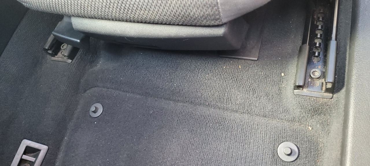 V některých vozech jsou pod sedadly prvky (jako na fotografii níže), které ovlivňují délku rohože, a proto je pro nás tato fotografie tak důležitá :)